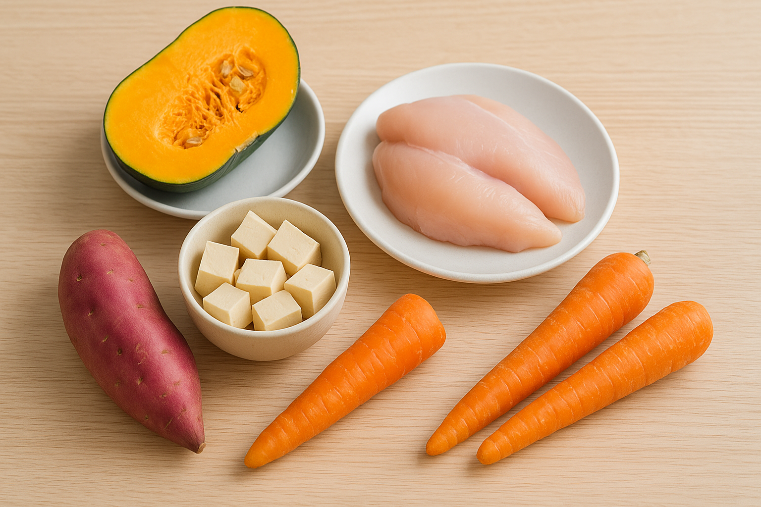 今回紹介した5つの食材は、組み合わせ次第で無限のバリエーションが可能です。例えば、さつまいも+鶏ひき肉+にんじんでおやきにしたり、豆腐+かぼちゃ+にんじんでスープにしたりすることで、栄養バランスも良くなります。